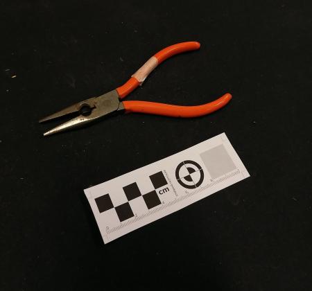 Tång med handtag av gummi.