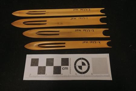 | Dimensioner: | (1) L: 14 cm B: 1,5 cm (2) L: 12 cm B: 1,4 cm (3) L: 14 cm B: 1,1 cm (4) L: 11,6 cm B: 1,2 cm |
