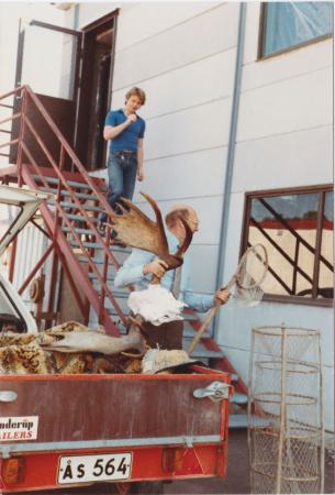 Baksidetext: Dir. Nils Eriksson och musiker Jack Mattsson hjälparbetare vid utställningsnedtagande och förvaringsplaceringen 1982.