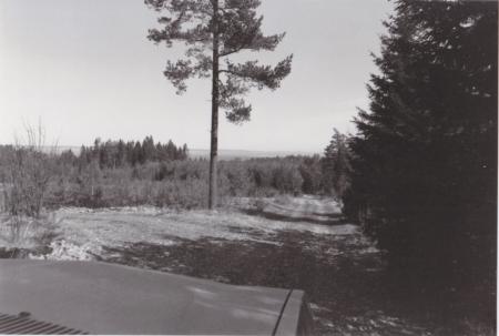 Baksidetext av Allen Mattsson: Vacker vy från stenåkrar i Bistorp. April 1984