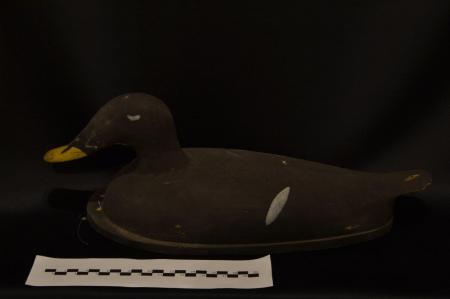 Två vettar föreställande svärtpar. Hanen med gul näbb. Fåglarna är gjorda av hela träbitar. De ser påskjutna ut.