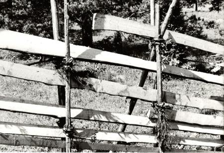 Baksidetext: Nyligen gärdad gärdesgård med basade granband Ramsholmen 1985