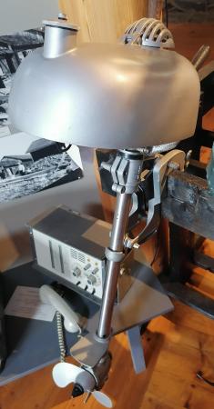Utombordsmotor av märket "NW Maria". Tidigare dokumentation eller katalognummer har ej hittats.