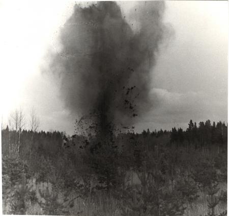 Sprängning av vattenhål för viltet, Lemland 1982.