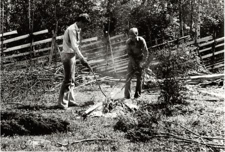 Baksidetext: Basning av granband till gärdesgård. Ramsholmen 1984