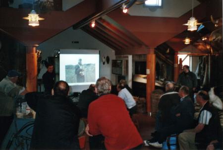 Färgfotografi på en grupp besökare på första jaktens dag på museet.