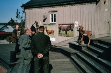 Färgfotografi på en grupp besökare på första jaktens dag på museet.