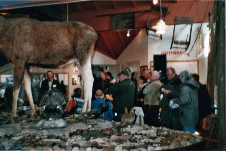 Färgfotografi på en grupp besökare på jaktens dag på museet.