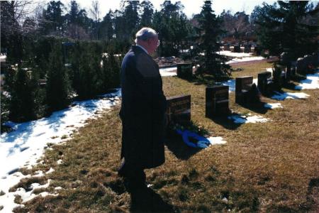 Färgfotografi på stödföreningen som hedrar och uppvaktar Bertel Fagerlund samt Ingmar (Nilsson?) som var med och hjälpte starta föreningens verksamhet genom att uppmärksamma att föremål borde börja samlas innan de försvann. Något som utgjorde startskottet för stödföreningens verksamhet.