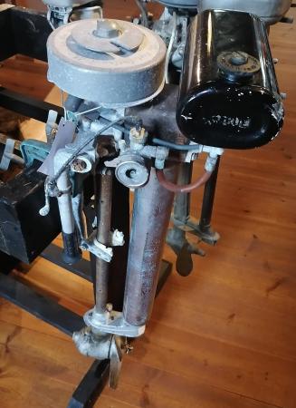Utombordsmotor av märket "British Seagull". Tidigare dokumentation eller katalognummer har ej hittats.